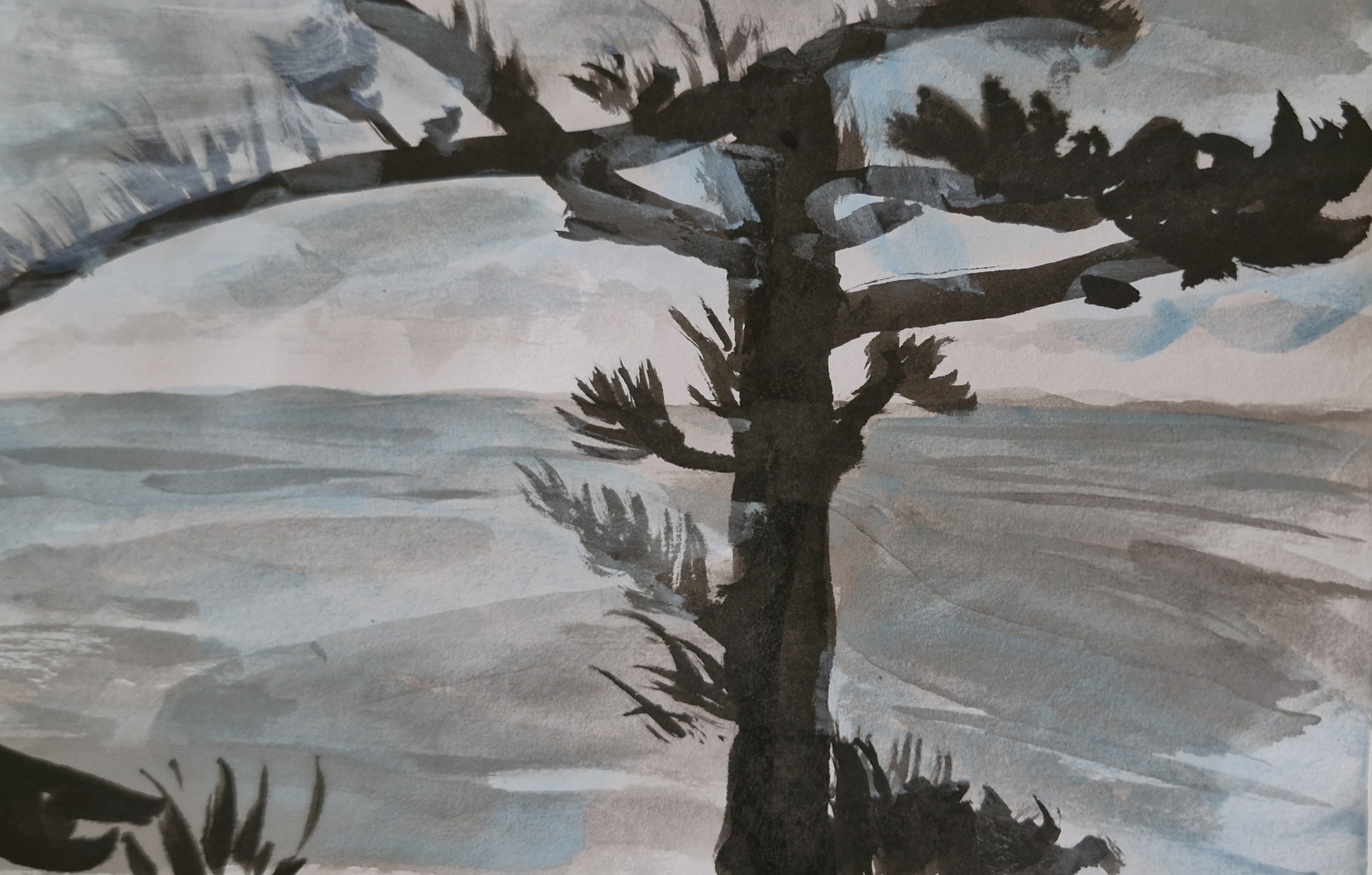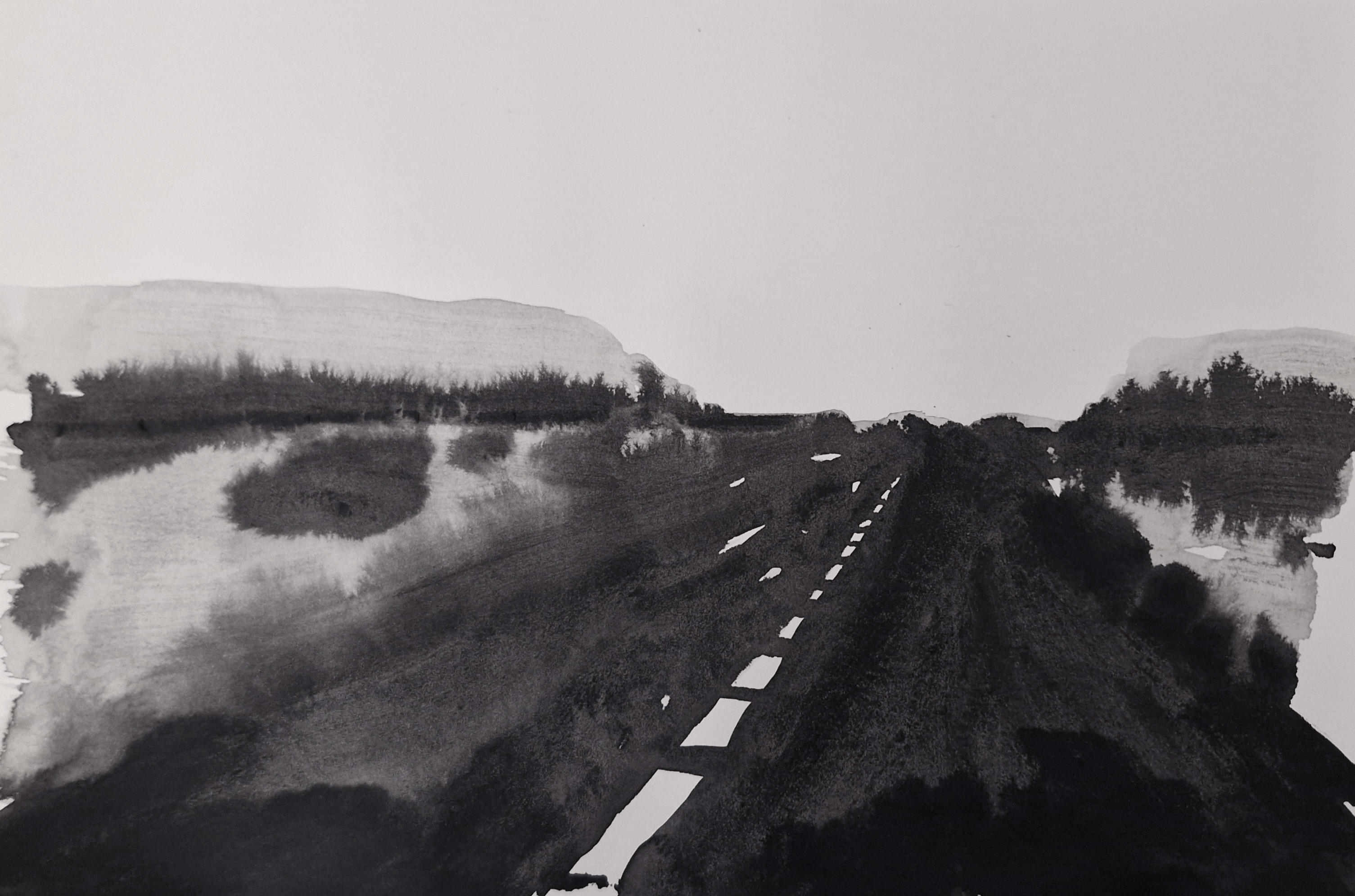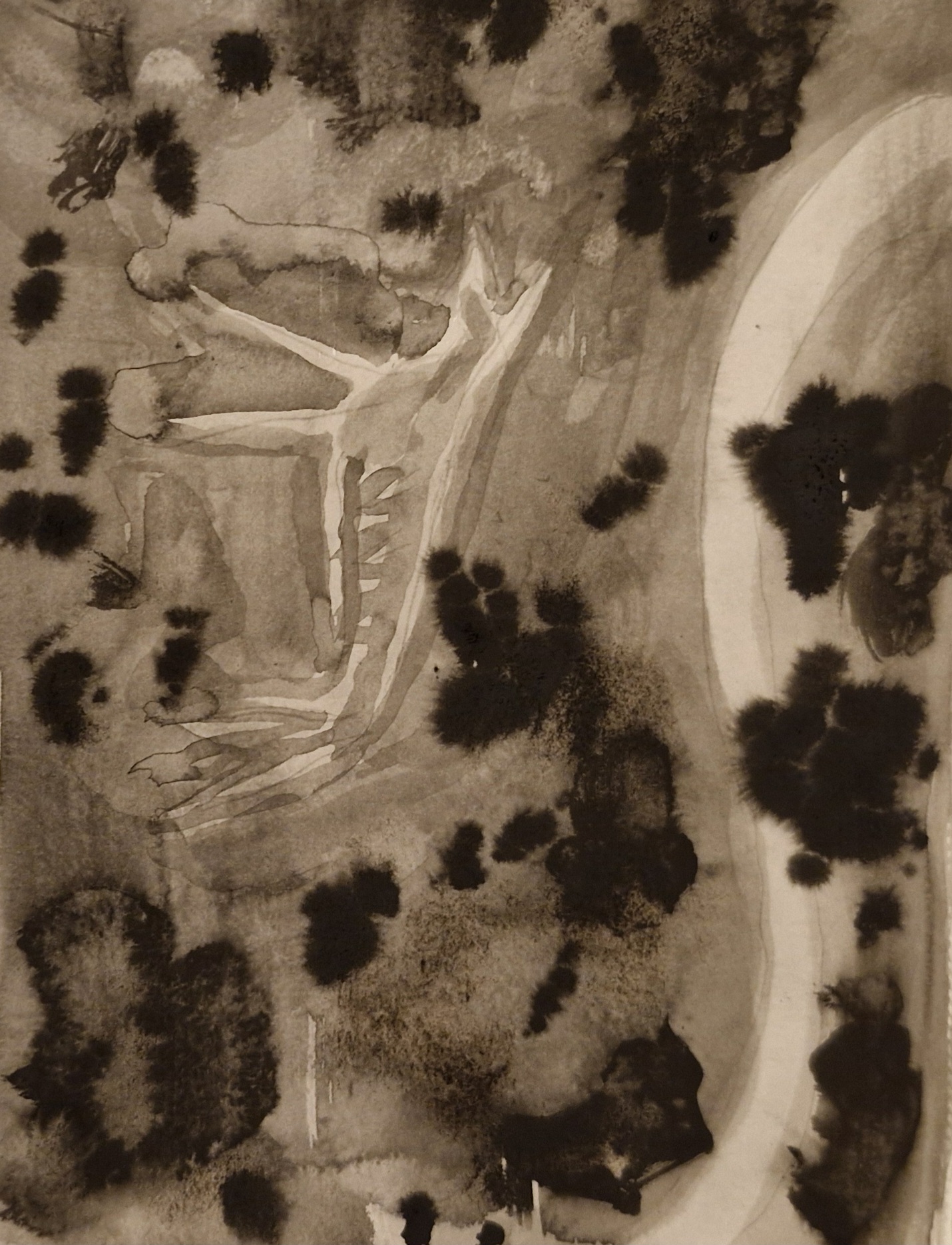 I practice a kind of Thomas Merton-inspired art that focuses on the moment. Mostly ink on paper, it is an exercise in stillness. Merton combined postwar gestural abstract expressionism (he was a good friend of Ad Reinhart) with zen calligraphy (prompted by DT Suzuki – who also pointed him in the direction of Meister Eckhart). Some of the images (top left) are drawn in minutes; with some I use one dip of the brush in Japanese ink and follow it to the end. Accidents and impermanence are welcomed. The other aspect of the art is landscape, real or imagined.